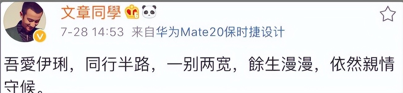 事情曝光后,文章立刻向马伊琍和她的家人进行道歉,随后紧接着在社交媒体发出承认出轨和已经向家人道歉的言论。